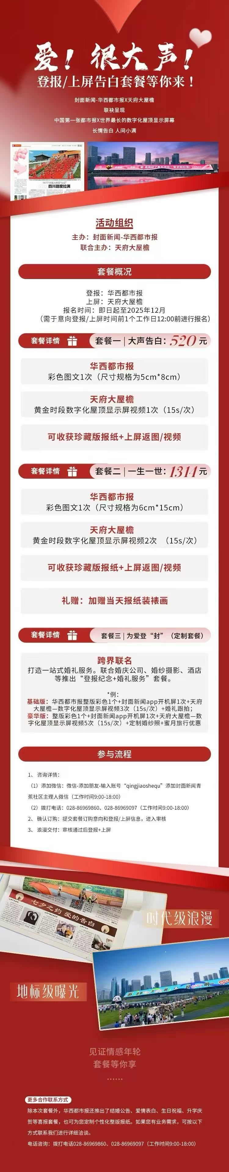 当77条告白弹幕如流星划过夜空,在全球最长的LED屏上交织成七夕最璀璨的注脚,时间仿佛暂停。每一句“爱你”都是浪漫的心跳,每一条弹幕都是时光的典藏——这场由封面新闻与天府大屋檐共筑的心动瞬间,已化作2025年七夕的一抹温柔的集体回忆。